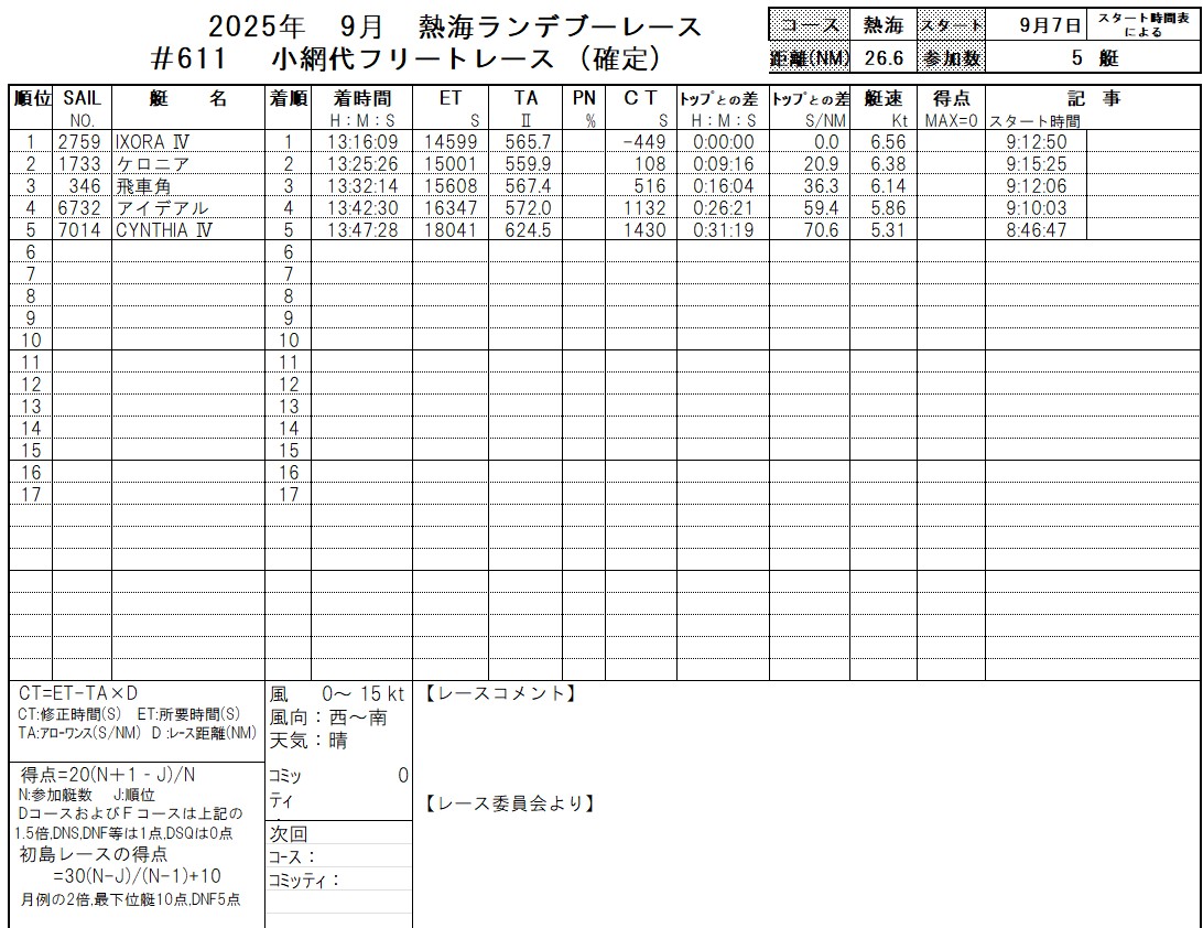 但し小網代レーティング取得艇、または取得申請中の艇のみ。取得申請・お問合せはこちら。